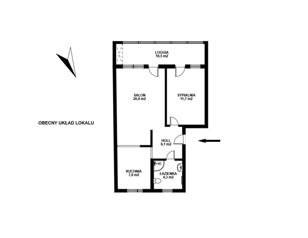Istnieje możliwość przeniesienia kuchni do salonu (tworząc aneks kuchenny) i wydzielenia dodatkowego pokoju w miejscu obecnej kuchni. Mieszkanie może w łatwy sposób zyskać funkcjonalny, 3-pokojowy układ.