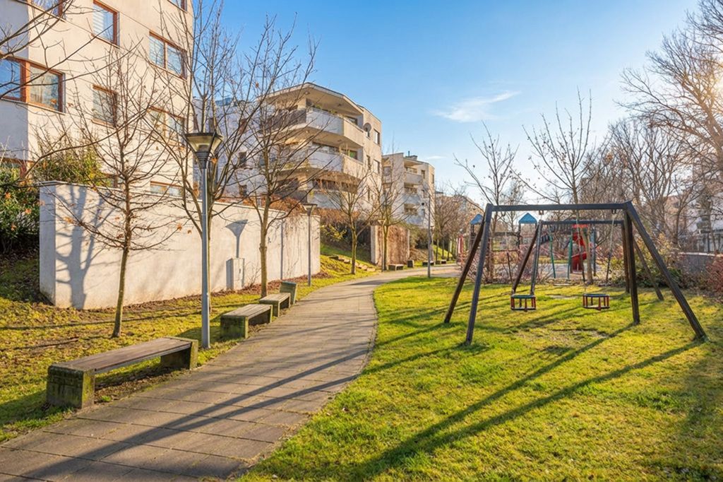 Mieszkanie znajduje się na 2. piętrze trzypiętrowego budynku z windą, na cenionym osiedlu Tivoli. Osiedle składa się z 7 niskich budynków (łącznie 280 mieszkań) i posiada wspólną halę garażową poniżej poziomu 0.