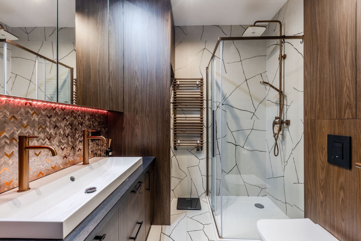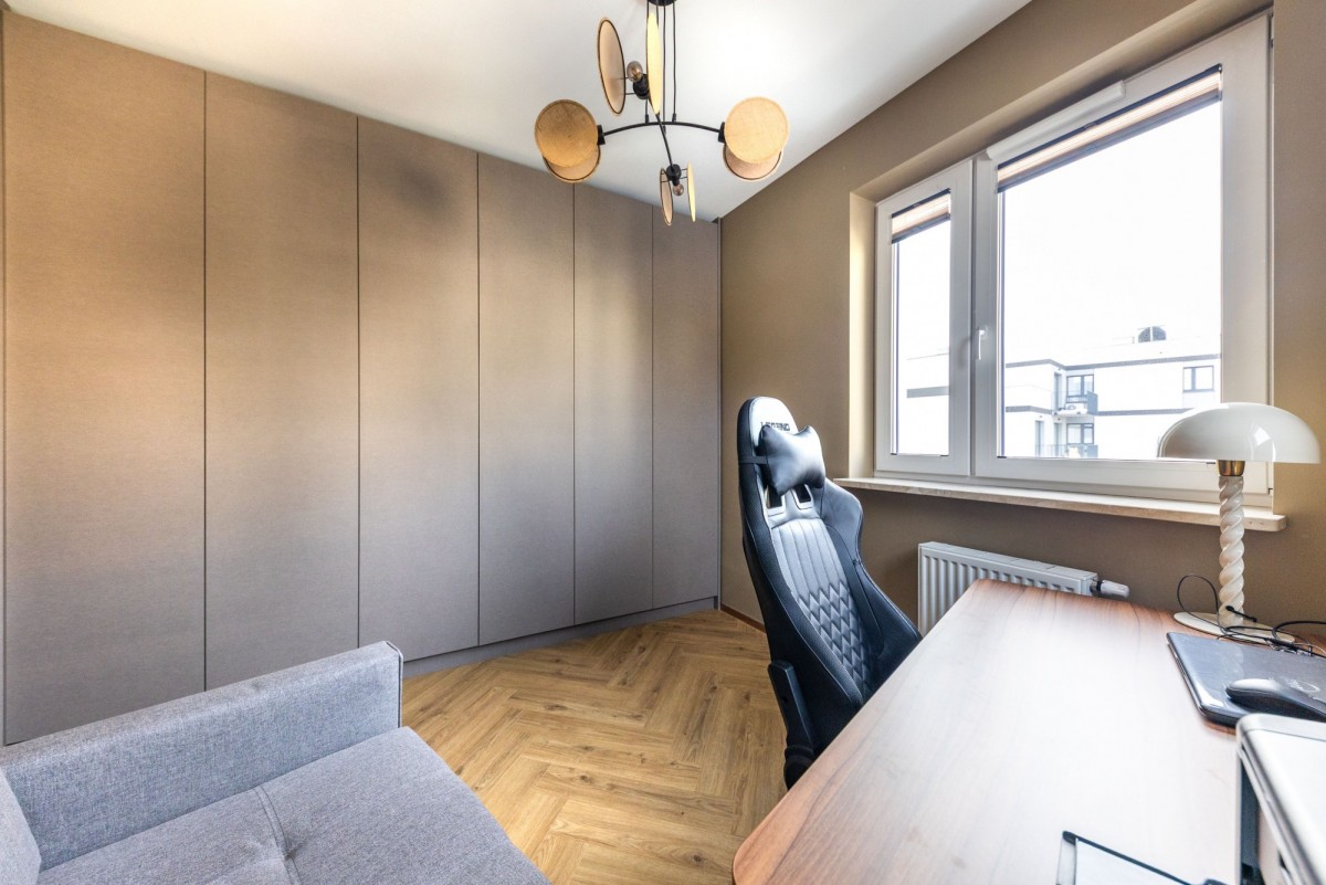 Mieszkanie zostało zaprojektowane przez architekta z dbałością o ergonomię i ponadczasową estetykę.