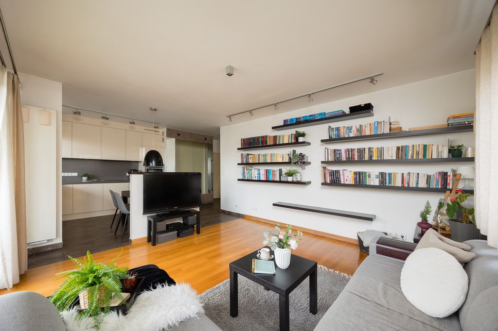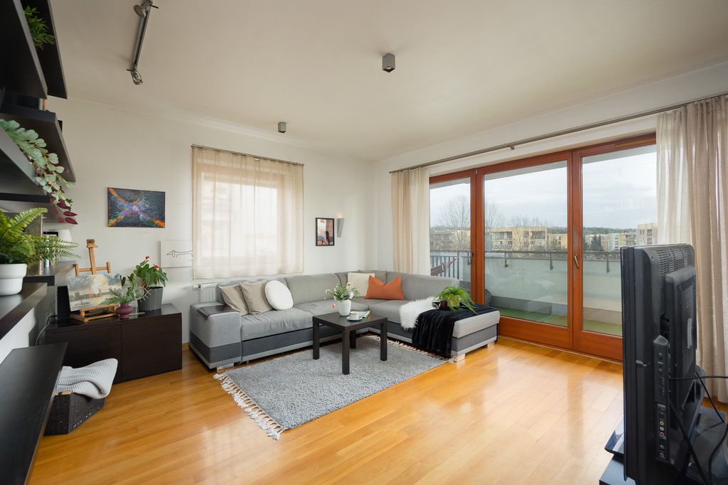 Mieszkanie jest przestronne, jasne i bardzo funkcjonalne. Duże okna balkonowe zapewniają dobre doświetlenie wnętrz.