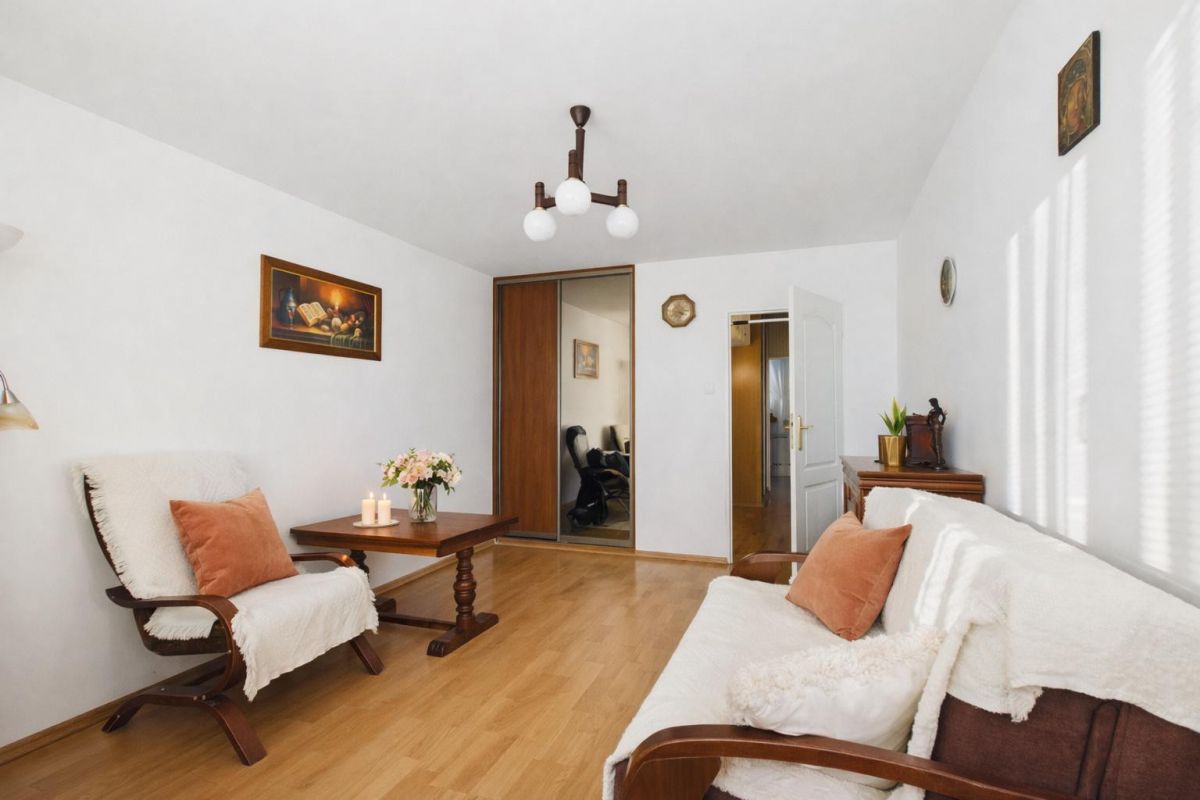 Na sprzedaż funkcjonalne i w pełni gotowe do zamieszkania mieszkanie o powierzchni 46 m², położone na 4 piętrze w 4-piętrowym budynku z 1970 roku. Lokal znajduje się na spokojnym, zielonym osiedlu z parkingiem dla mieszkańców za szlabanem.