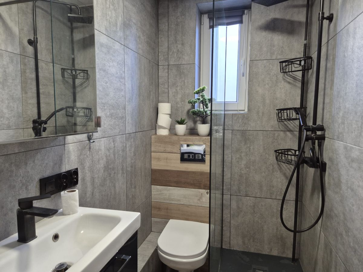 na ścianach położone nowe gładzie, zupełnie nowa łazienka , nowe wysokiej jakości panele, , w przedpokoju podwieszany sufit z oświetleniem ledowym, nowe drzwi wejściowe antywłamaniowe o podwyższonych parametrach, doprowadzony światłowód, nowa klimatyzacji