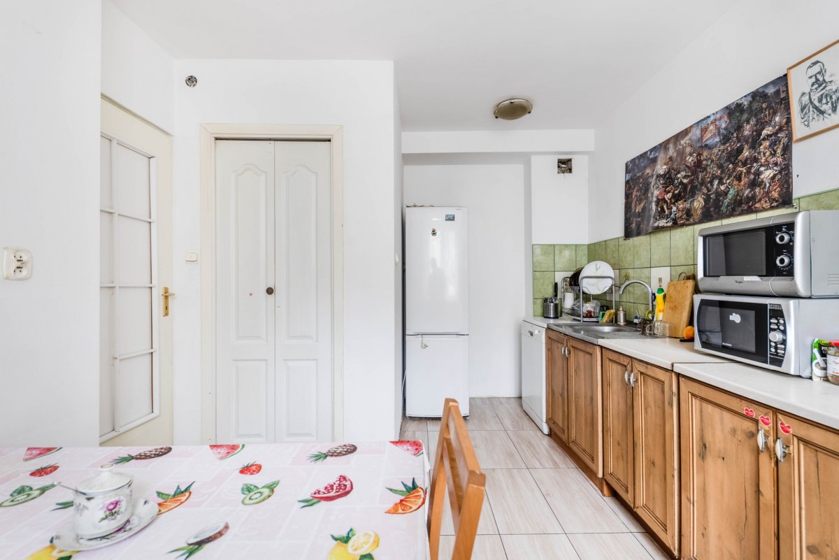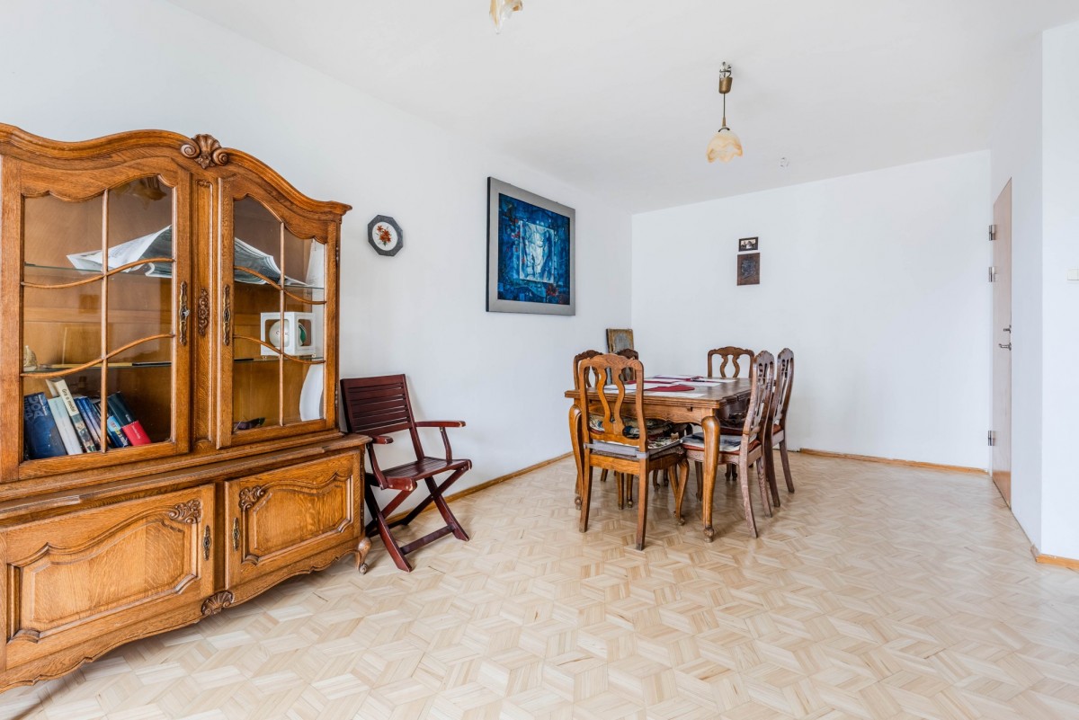 Mieszkanie z potencjałem na pierwszym pietrze w niskim 3 piętrowym budynku. Szerokie klatki schodowe. Powierzchnia ma 110 mkw, mieszkanie bezprogowe, podłoga parkiet złoty jesion, modrzewiowe okna. Mieszkanie składa się z 5 pokoi, w tym duży salon z balkonem, 4 sypialnie - jedna bardzo duża z balkonem, 2 garderoby, osobna kuchnia z oknem i spiżarnią, duża łazienka z wanną, druga łazienka z prysznicem. Do mieszkania przynależą 2 miejsca parkingowe - każde po 11.5 mkw w podziemnym garażu oraz komórka lokatorska 7 mkw - dwa garaże i komórka lokatorska w cenie 110 tys. zł