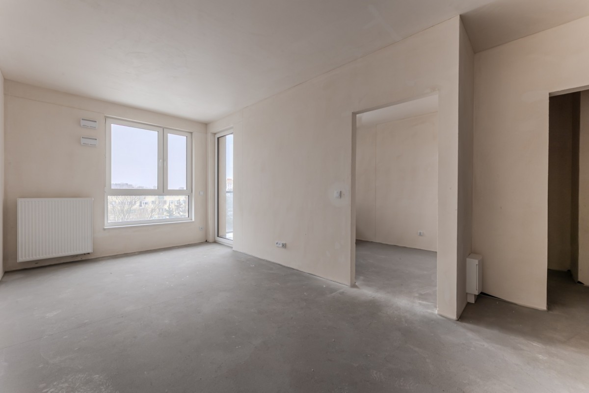 Odebrane i gotowe do wykończenia, 2-pokojowe mieszkanie o powierzchni 33,5 m², położone na 4. piętrze 11 piętrowego nowoczesnego budynku oddanego do użytku w 2025 roku.