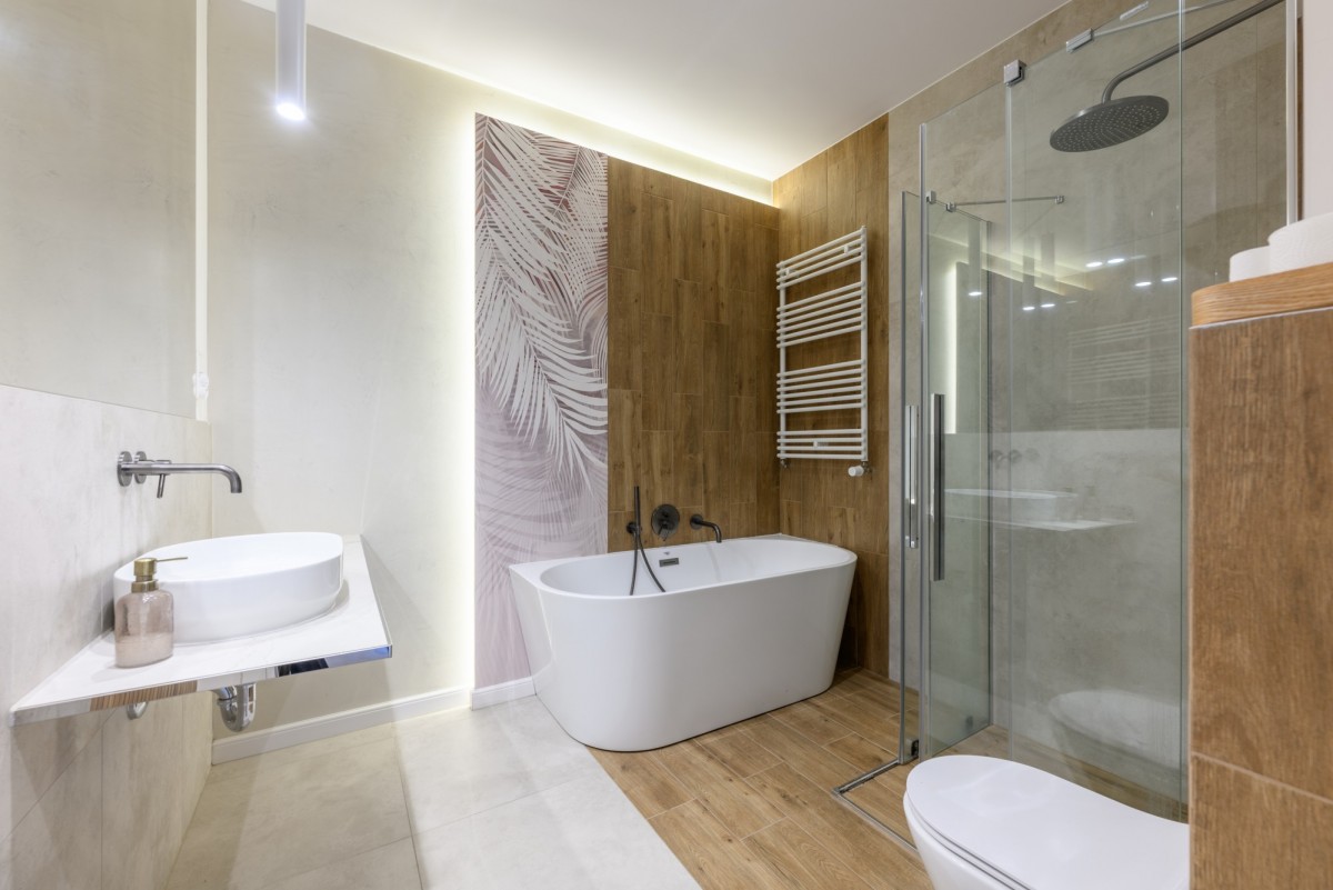 - Łazienka z wanną i prysznicem - komfortowe rozwiązanie dla domowników.