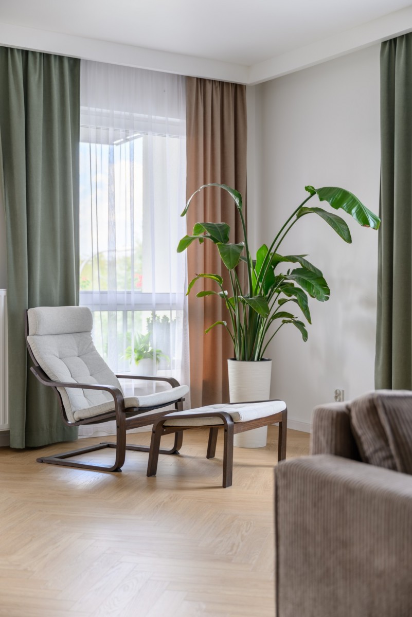 Atutem mieszkania są duże przeszklenia z filtrami antysmogowymi, które zapewniają doskonałe doświetlenie wnętrz i poczucie przestrzeni.