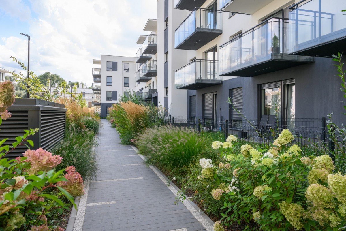 Deweloper zadbał również o detale w otoczeniu osiedla: bezpieczne place zabaw (w budowie), domki dla owadów, budki dla ptaków, siłownię plenerową, stacje rowerowe oraz ładowarki do samochodów elektrycznych.