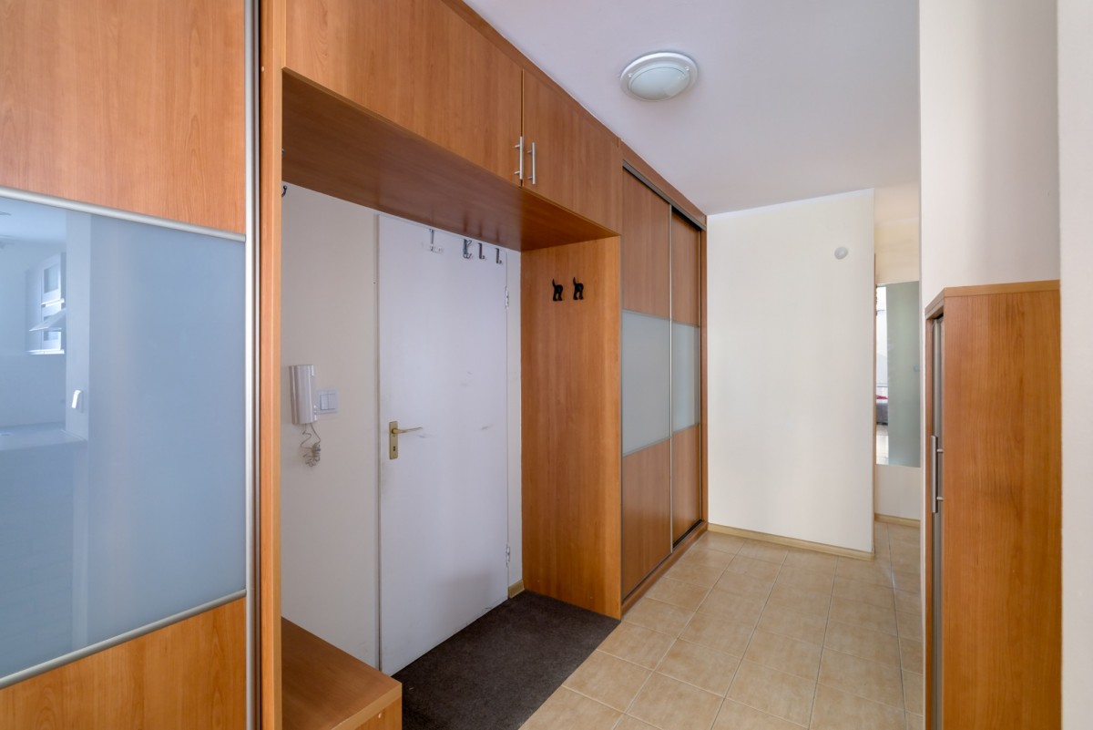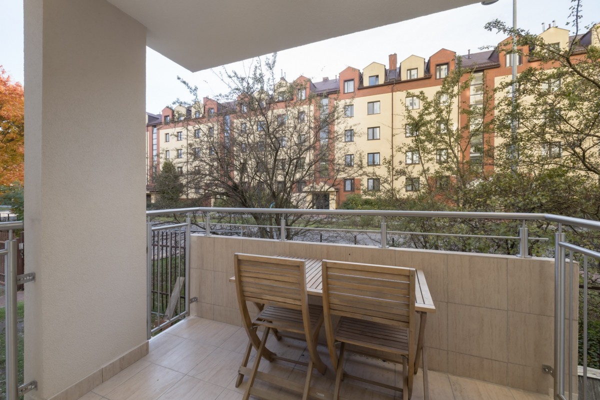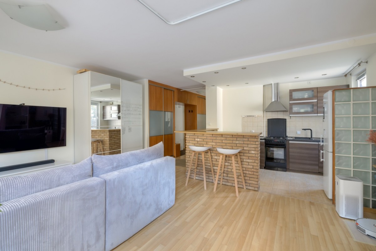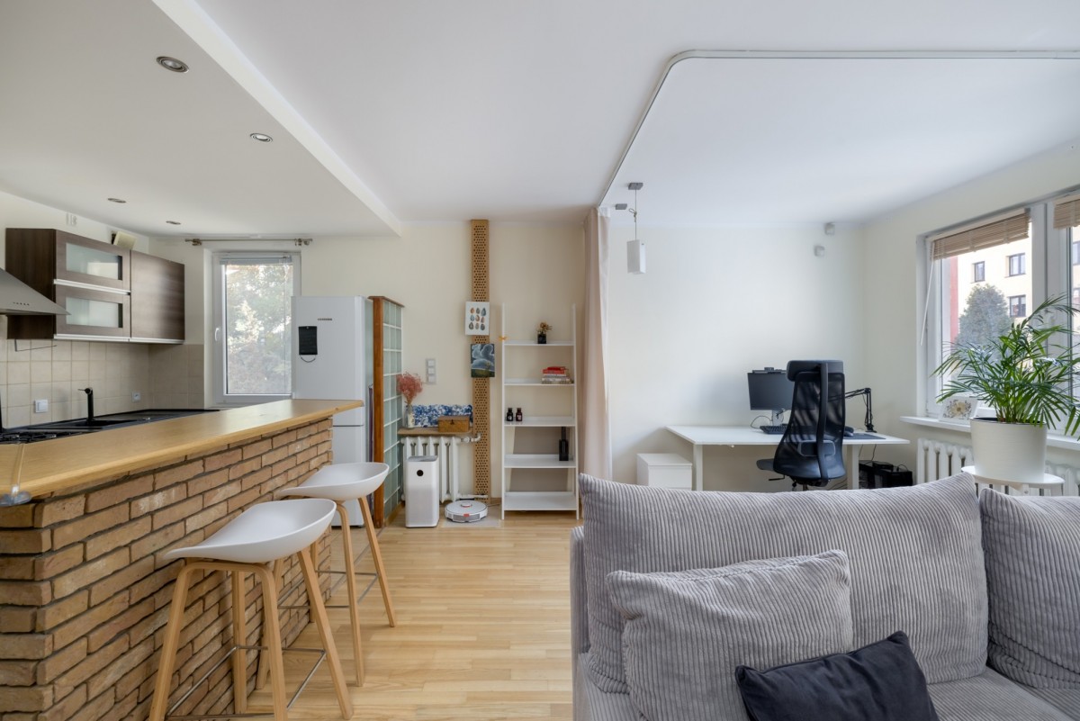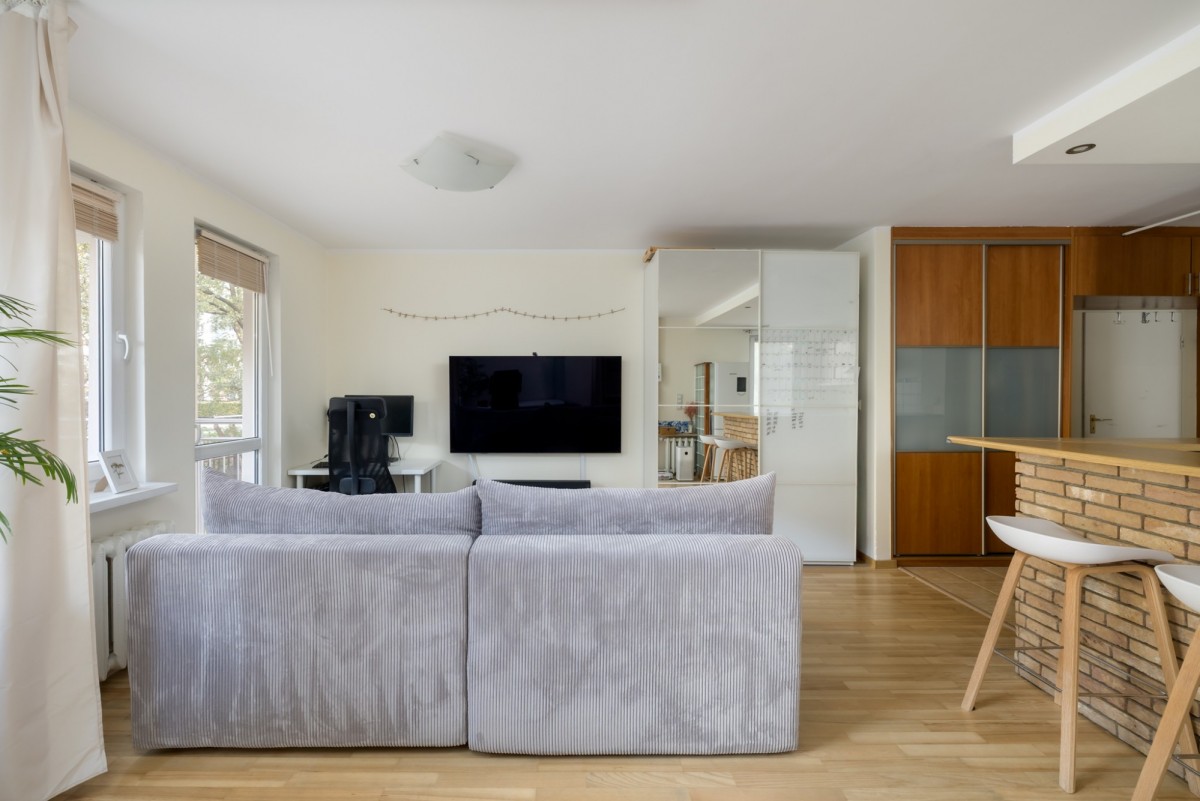 Mieszkanie jest w pełni umeblowane i wyposażone. Kuchnia została zabudowana na wymiar, z nowoczesnym sprzętem AGD, co pozwala natychmiast wprowadzić się bez konieczności dodatkowych nakładów. Do dyspozycji mieszkańców są także liczne szafy i wnęki do przechowywania.