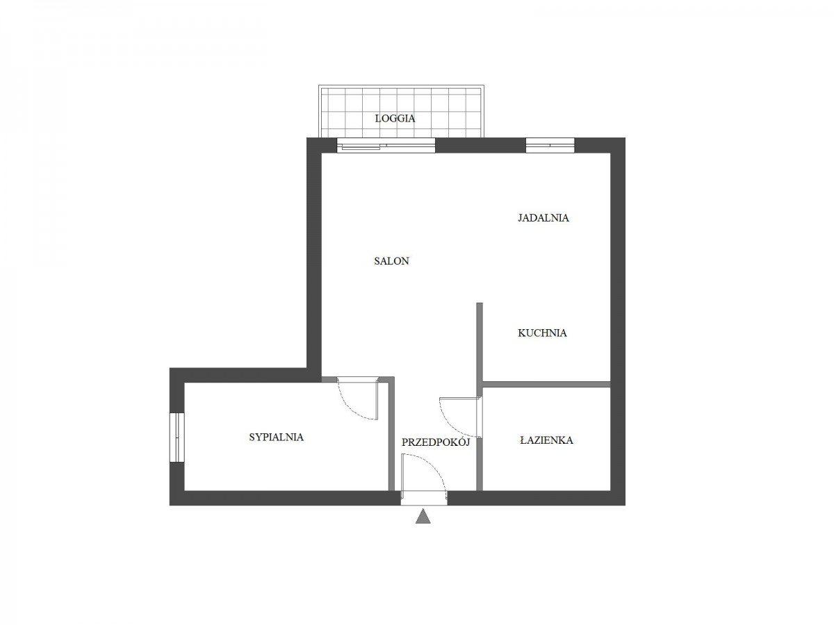 - Salon połączony z jadalnią i kuchnią z wyjściem na loggię.