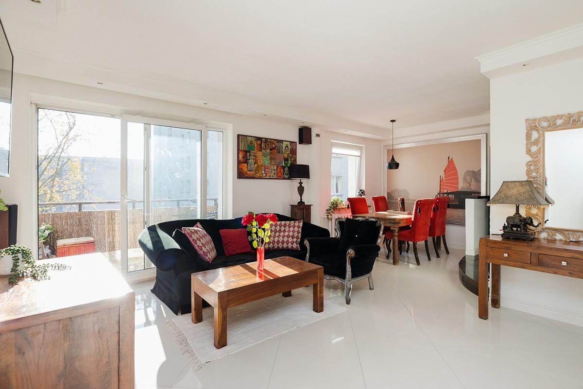 Mieszkanie o unikalnym charakterze i wysokim standardzie zostało w całości wyremontowane, co czyni je gotowym do wprowadzenia się bez konieczności dodatkowych nakładów finansowych. Wymieniona została elektryka (skrzynka, okablowanie, kontakty), odświeżone podłogi (dąb, gres szkliwiony, marmur) , wstawiono nowe okna i drzwi, a ściany pokryte zostały gładzią gipsową. Powiększony został też otwór okienny ( przesuwno-uchylne okno panoramiczne o wymiarach 2,3 m x 2,1 m,) z wyjściem na przestronną loggię o powierzchni 7 m², co zapewnia mnóstwo naturalnego światła i widok na zieleń drzew.