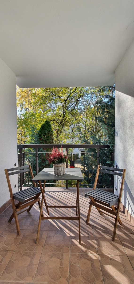 Mieszkanie posiada balkon — dodatkowy atut, szczególnie w ciepłych miesiącach, daje więcej przestrzeni i możliwości odpoczynku na świeżym powietrzu. Dzięki osobnej kuchni i osobnej toalecie mieszkanie oferuje dobre oddzielenie stref dziennych od prywatnych