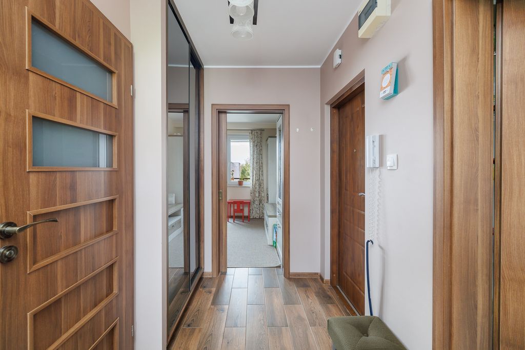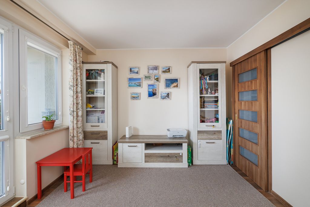 Technicznie istnieje możliwośc przerobienia mieszkania na trzy pokojowe- zrobienie aneksu kuchennego w pokoju dziennym, dzięki czemu w obecnej kuchni można zrobić dodatkowy pokój/sypialnię.