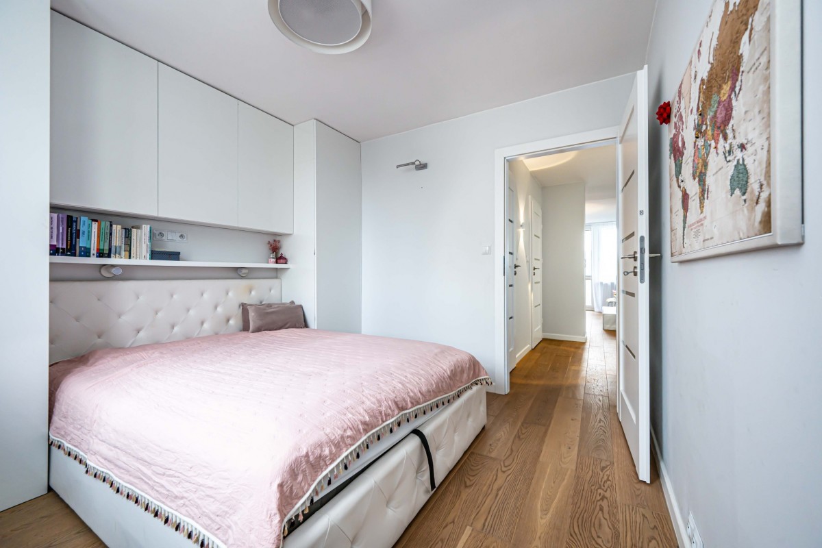 Mieszkanie jest jasne, dwustronne z ładnym widokiem na zieleń i inne budynki. Do mieszkanie przynależy piwnica oraz loggia. W mieszkaniu jest klimatyzacja oraz wile funkcjonalnych rozwiązań oraz pojemnych szaf. Układ mieszkania i jasne kolory pozwalają na komfortowe użytkowanie.