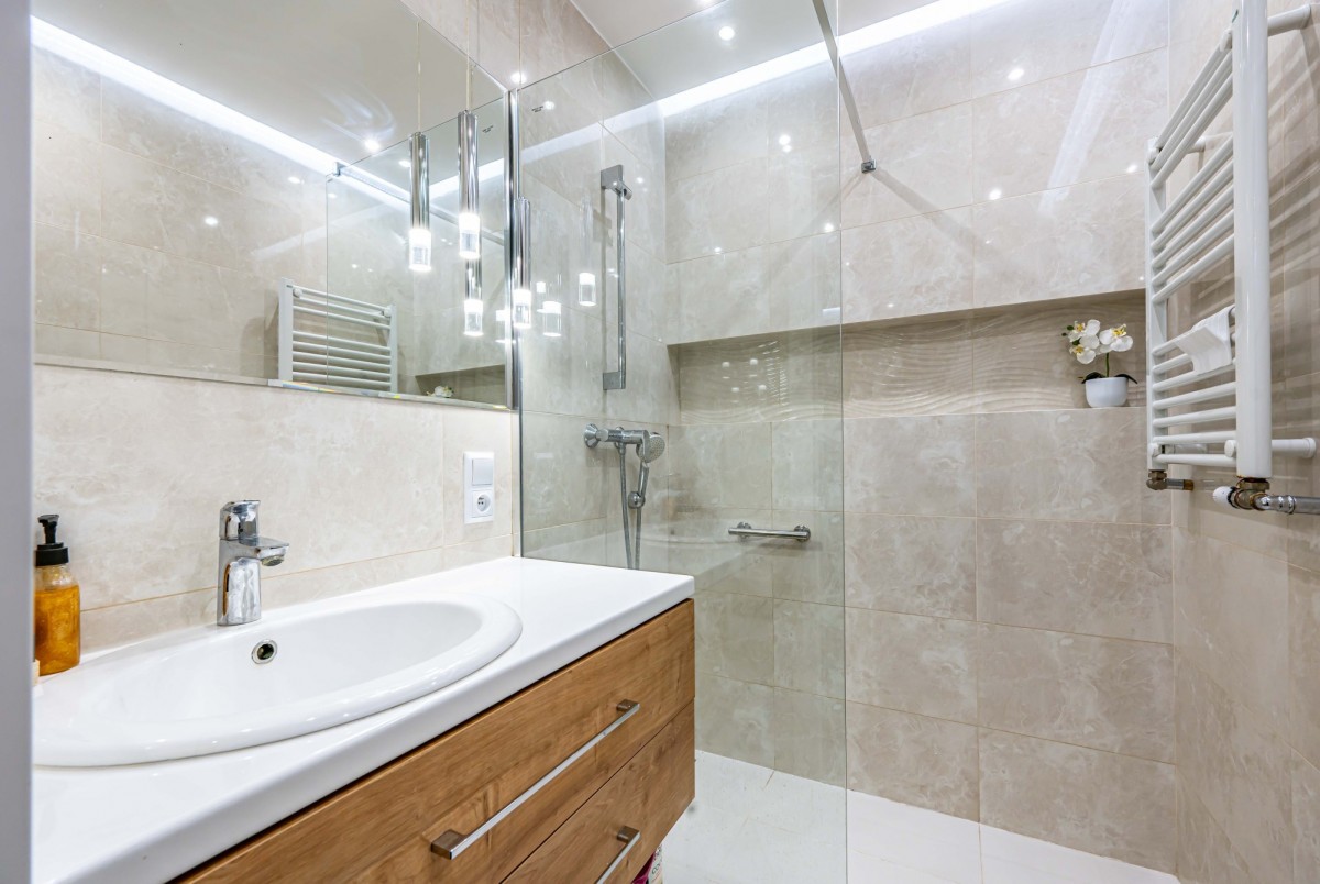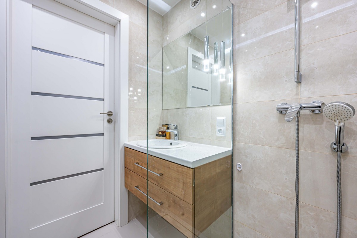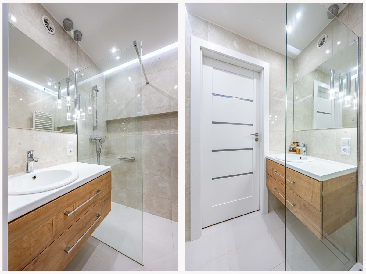 - łazienka z dużym prysznicem