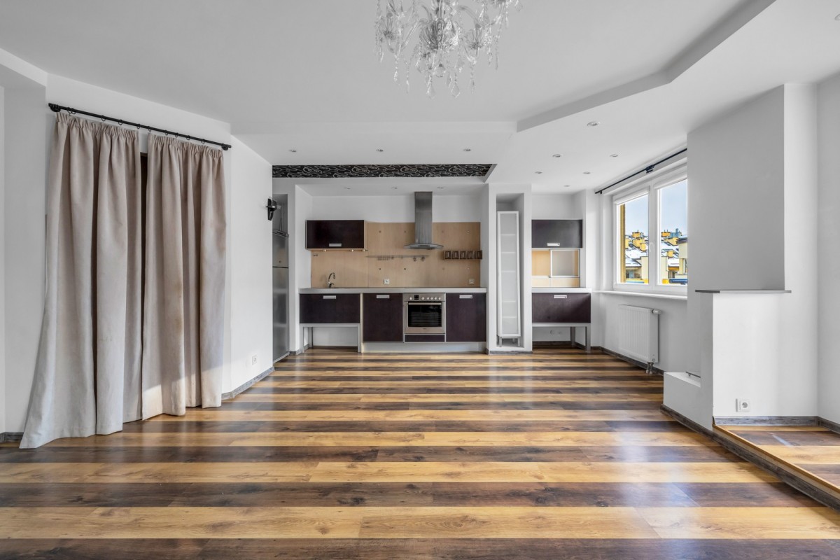 Mieszkanie jest idealną propozycją dla osób, które chcą dopasować przestrzeń do swoich potrzeb. Duża powierzchnia salonu z aneksem kuchennym pozwala wydzielić dodatkową sypialnie. Kuchnia wyposażona w zabudowę z markowym sprzętem AGD (Bosch, Siemens). Zależnie od preferencji stan mieszkania możemy określić jako do odświeżenia lub do remontu - zakładając zmianę aranżacji.