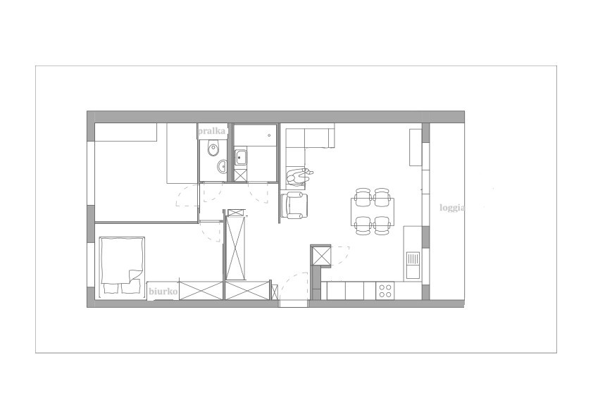 - salonu z aneksem kuchennym z wyjściem na loggie