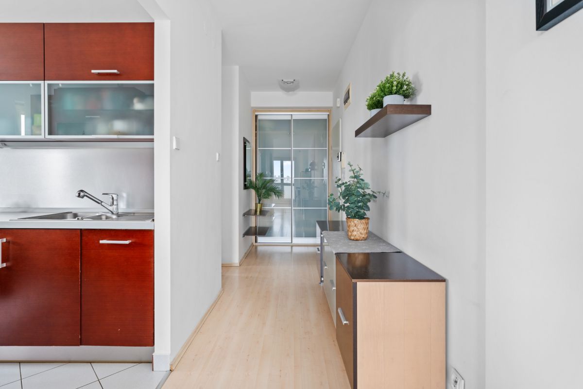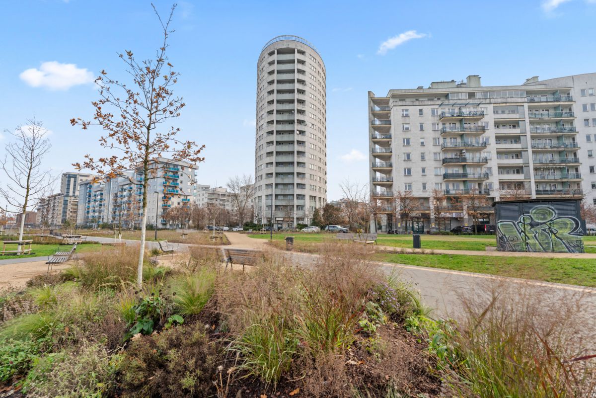 Mieszkanie położone jest na 8 piętrze w 16 piętowym budynku z roku 2003. W bloku do dyspozycji mieszkańców znajdują się dwie windy. Osiedle jest ogrodzone, monitorowane i strzeżone, co zapewnia wysoki poziom bezpieczeństwa i komfortu. Na zamkniętym patio mieści się plac zabaw dla dzieci.