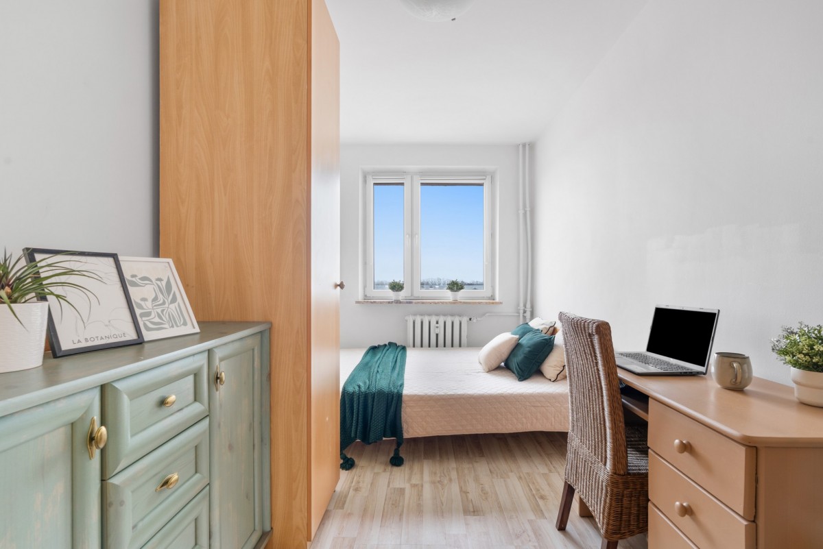 Bardzo jasne mieszkanie z piękną panoramą miasta, wypełnione naturalnym światłem o każdej porze dnia.