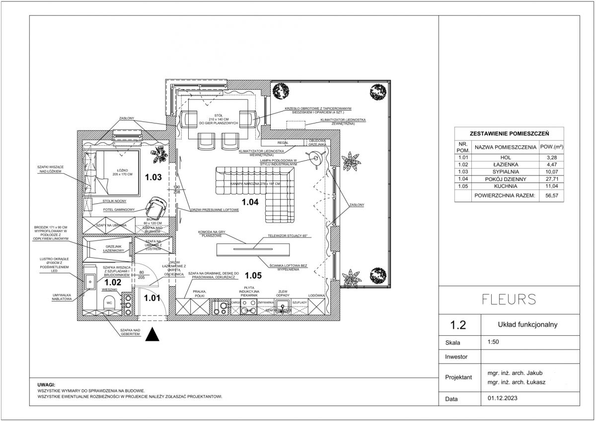 - Powierzchnia: 57.39 m2