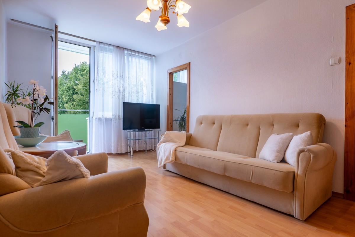 Mieszkanie położone w zielonej i spokojnej okolicy z niską zabudową, tuż przy samym lesie - idealnej dla osób ceniących kontakt z naturą, spacery i aktywność na świeżym powietrzu.