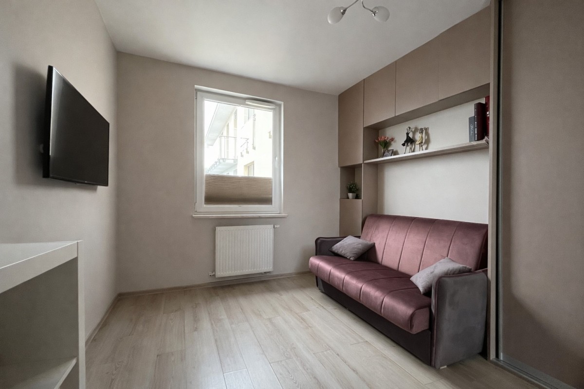 - Funkcjonalny układ 2 pokoi - salon z aneksem kuchennym oraz oddzielna sypialnia