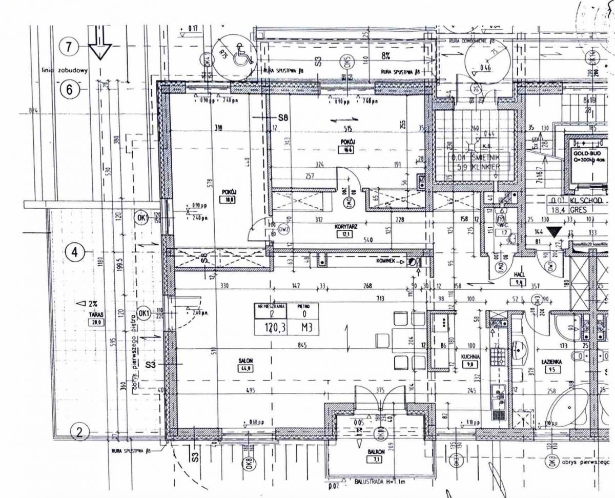 - 44 metrowego salonu z 28 metrowym tarasem oraz 7 metrowym balkonem