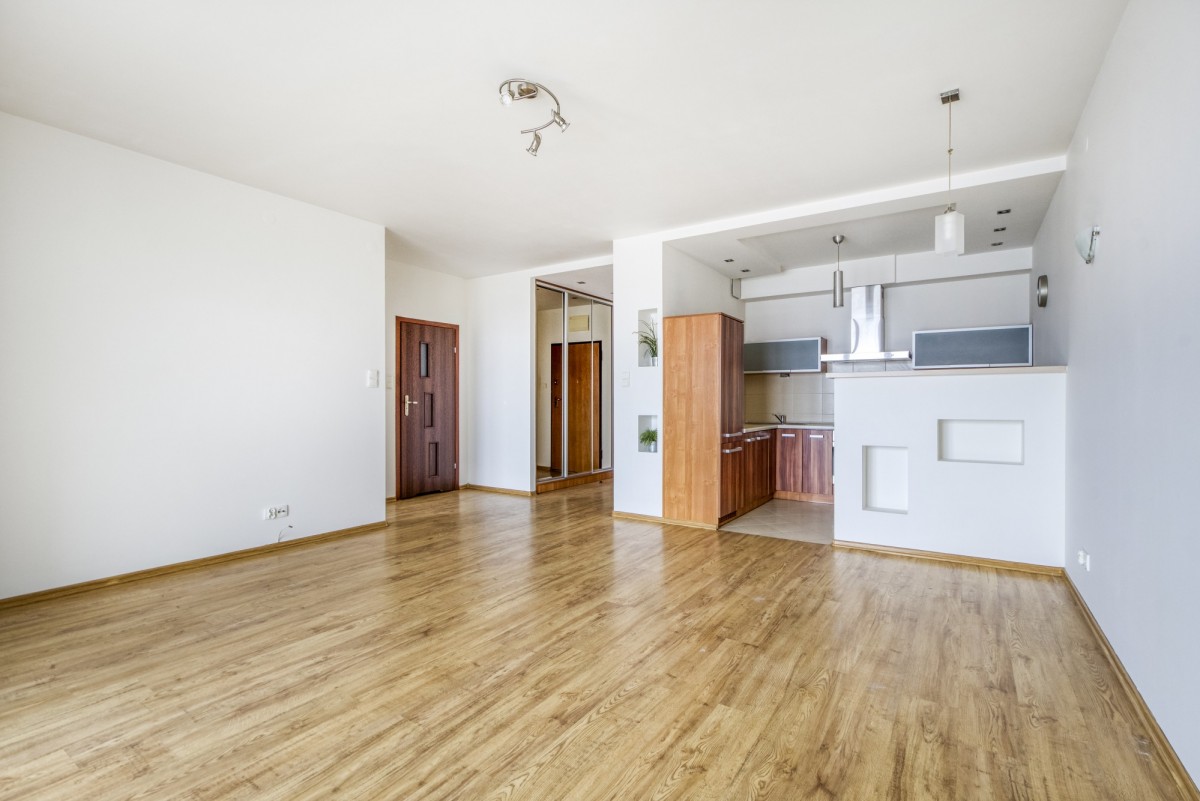 - salon z otwartą kuchnią (28 m²) z wyjściem na duży balkon (8,5 m²)