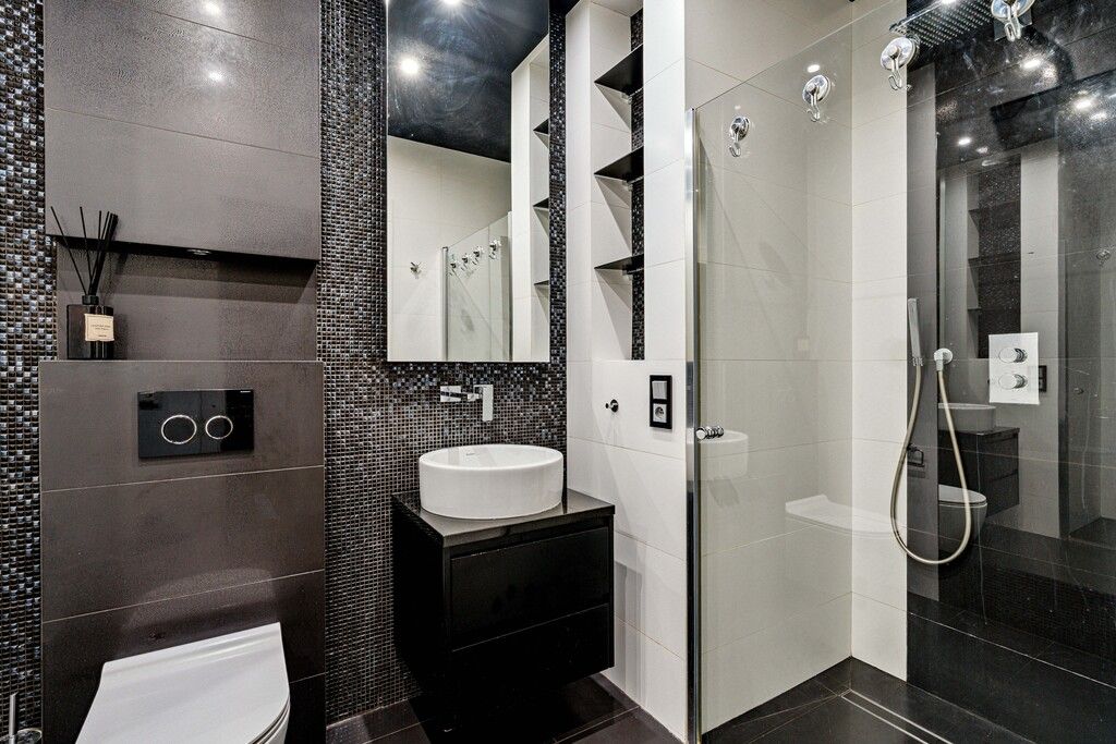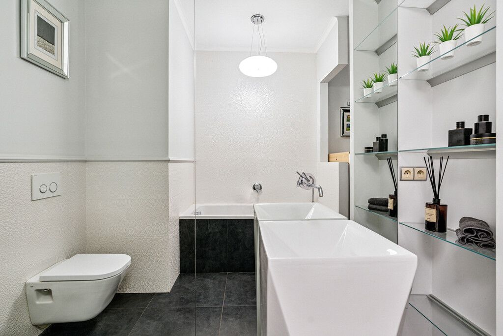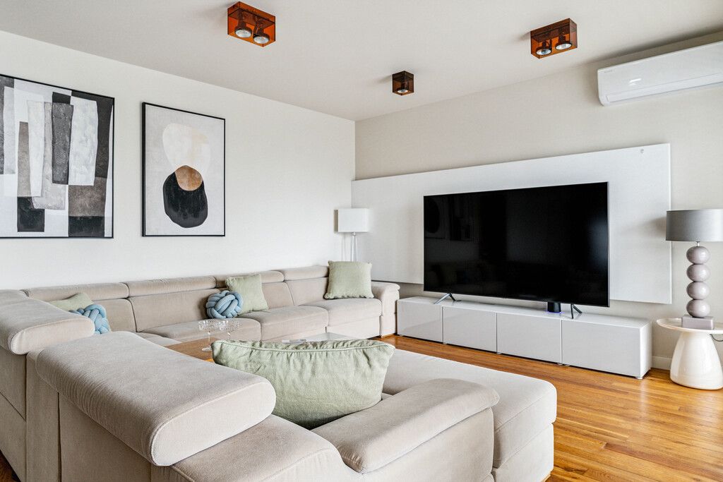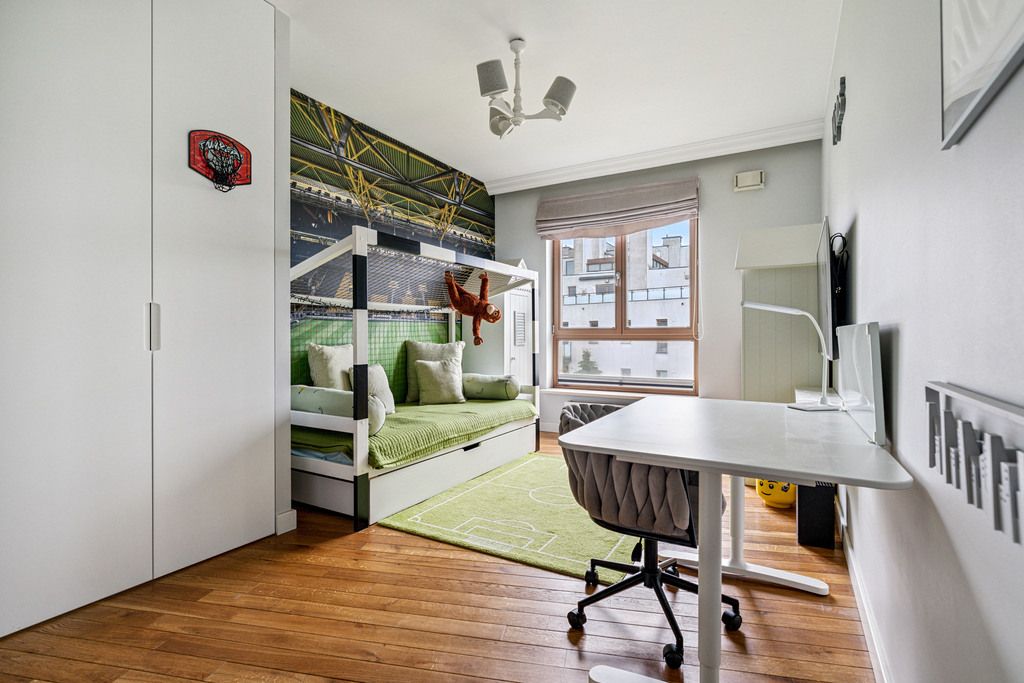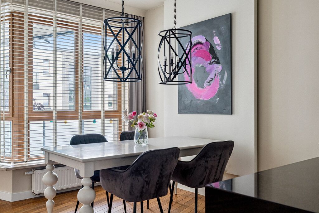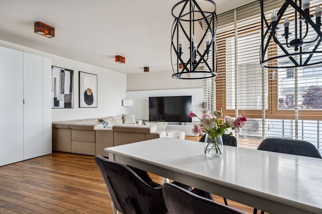 Mieszkanie zostało wykończone z dbałością o każdy detal, z wykorzystaniem materiałów premium – armatura marek Zucchetti, Steinberg, Jan des Bouvrie. Przemyślane oświetlenie i podział funkcjonalny tworzą klimat, który czuć od razu po wejściu. Całość jest spójna stylistycznie, bardzo zadbana – gotowa do zamieszkania bez żadnych nakładów.