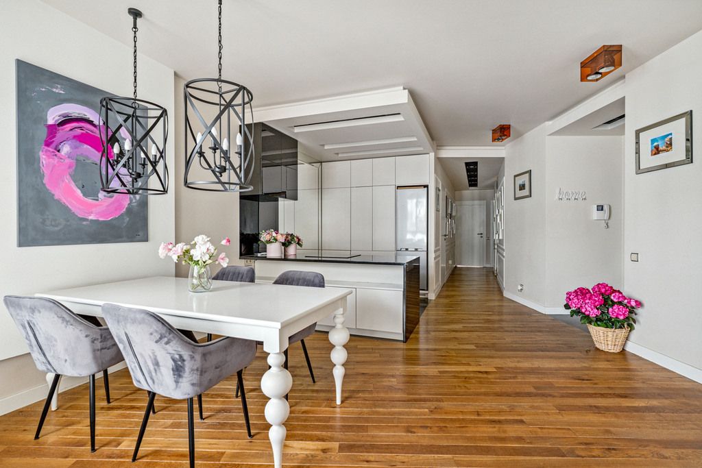 - Dębowe podłogi, sztukateria, klimatyczne oświetlenie zaprojektowane na zamówienie