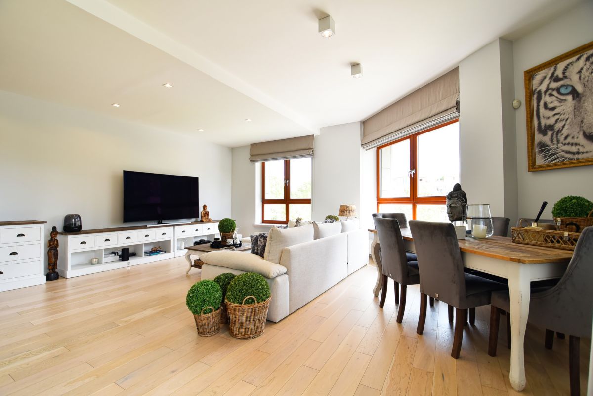 - doskonale zaprojektowany układ: ogromny salon i wyraźny podział na strefę dzienną i sypialnianą;