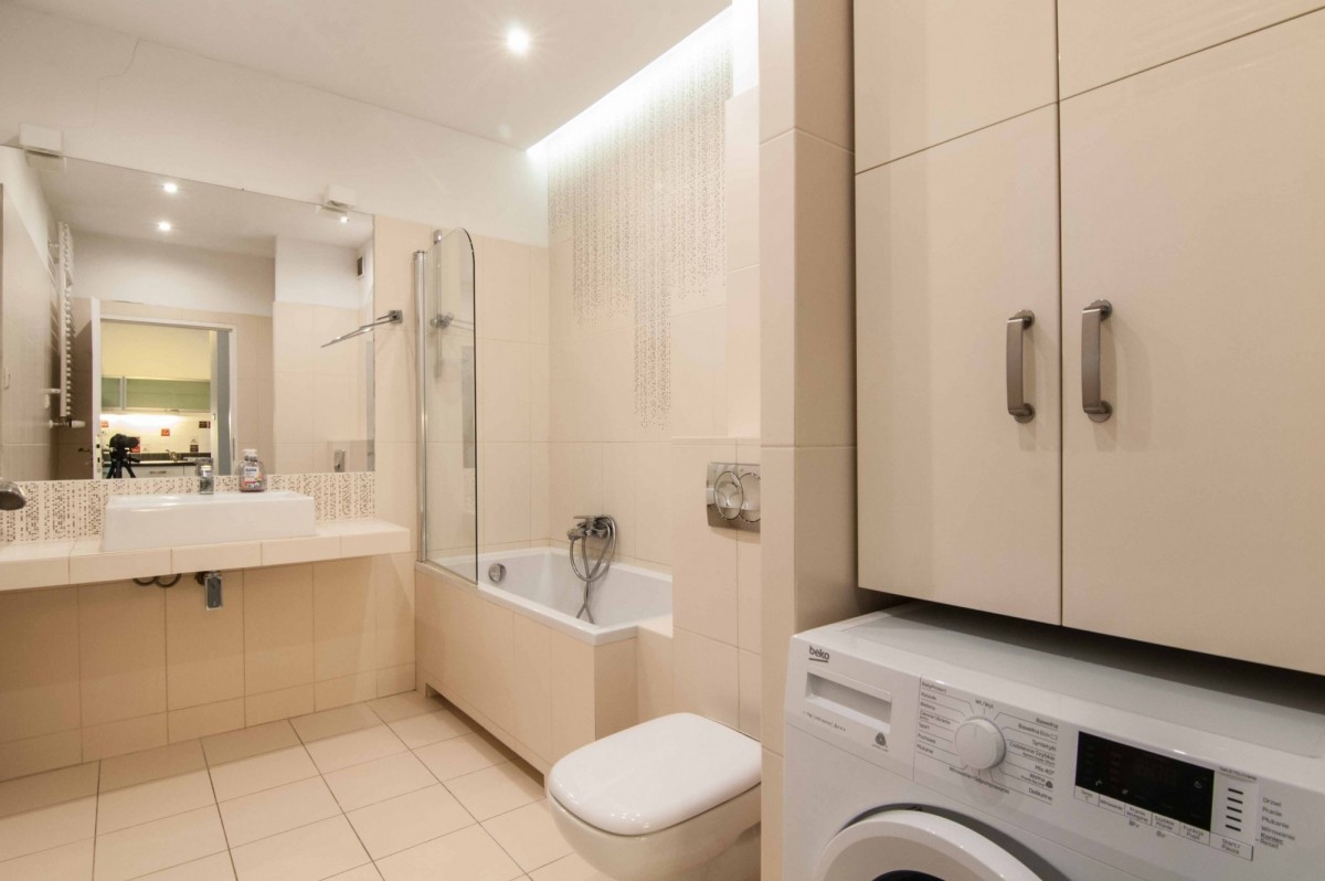 Łazienka obszerna 6 m2 - wanna z parawanem prysznicowym, pralka.