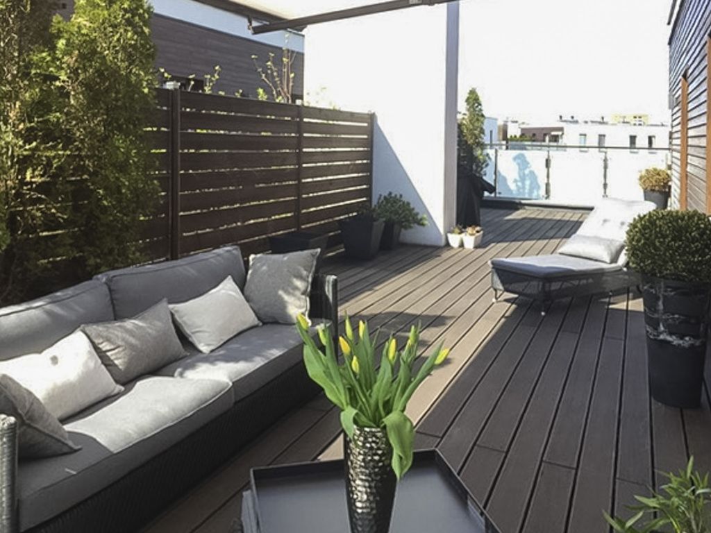 The 55 m² terrace offers privacy, peace, and open views - equipped with lighting and an automatic awning, it perfectly extends the living space outdoors.