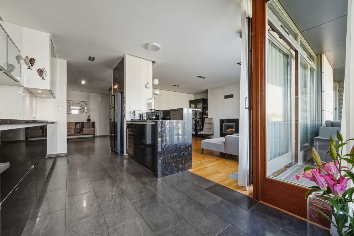 The apartment is sold with much of its equipment and furniture. The apartment boasts exceptional storage space - residents have access not only to a separate, lockable wardrobe and a storage unit on the terrace, but also to numerous built-ins and spacious wardrobes throughout.