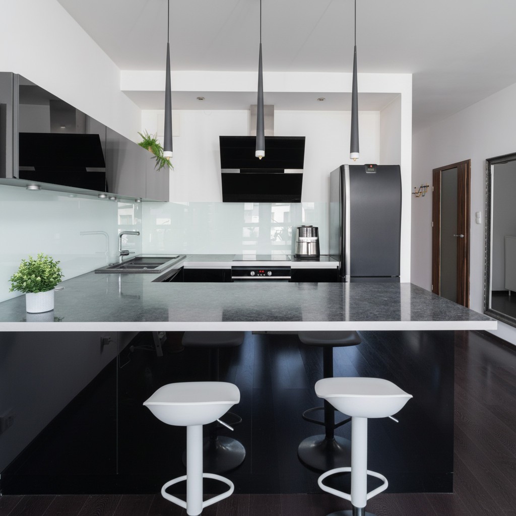 * Przestronna strefa dzienna, nowoczesny salon z dużymi oknami oraz otwarta kuchnia z wyspą tworzą jasną i przytulną przestrzeń.