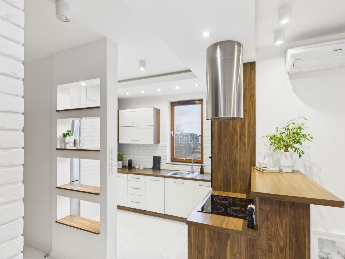 • Salon z aneksem kuchennym - otwarta, naturalnie doświetlona przestrzeń idealna do wypoczynku i spotkań.
