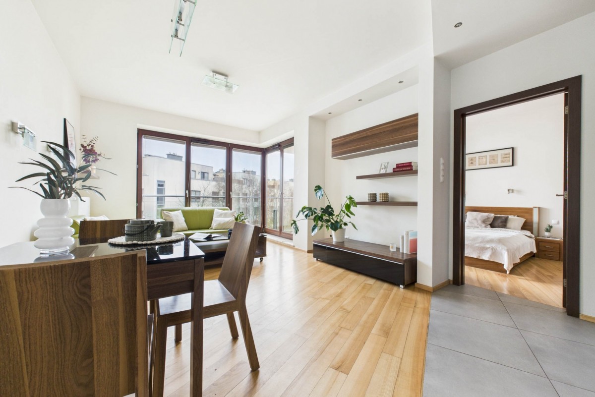 Na sprzedaż funkcjonalne, 2-pokojowe mieszkanie o powierzchni 48,3 m², położone na 3. piętrze w nowoczesnym budynku z 2008 roku, na cenionym Miasteczku Wilanów.