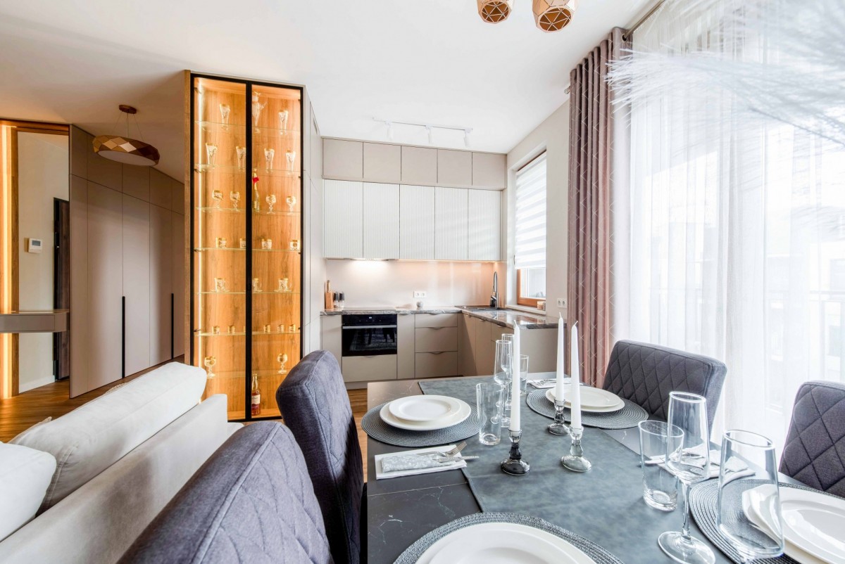 Нова, стильна 3-кімнатна квартира площею 61 м², оздоблена за проєктом дизайнера інтер'єрів, у містечку Вілянув. Продається сучасна квартира у новобудові 2024 року, робилася для себе, з повним дизайнерським ремонтом та меблями на замовлення. Квартира повністю готова для проживання - достатньо лише завезти особисті речі.