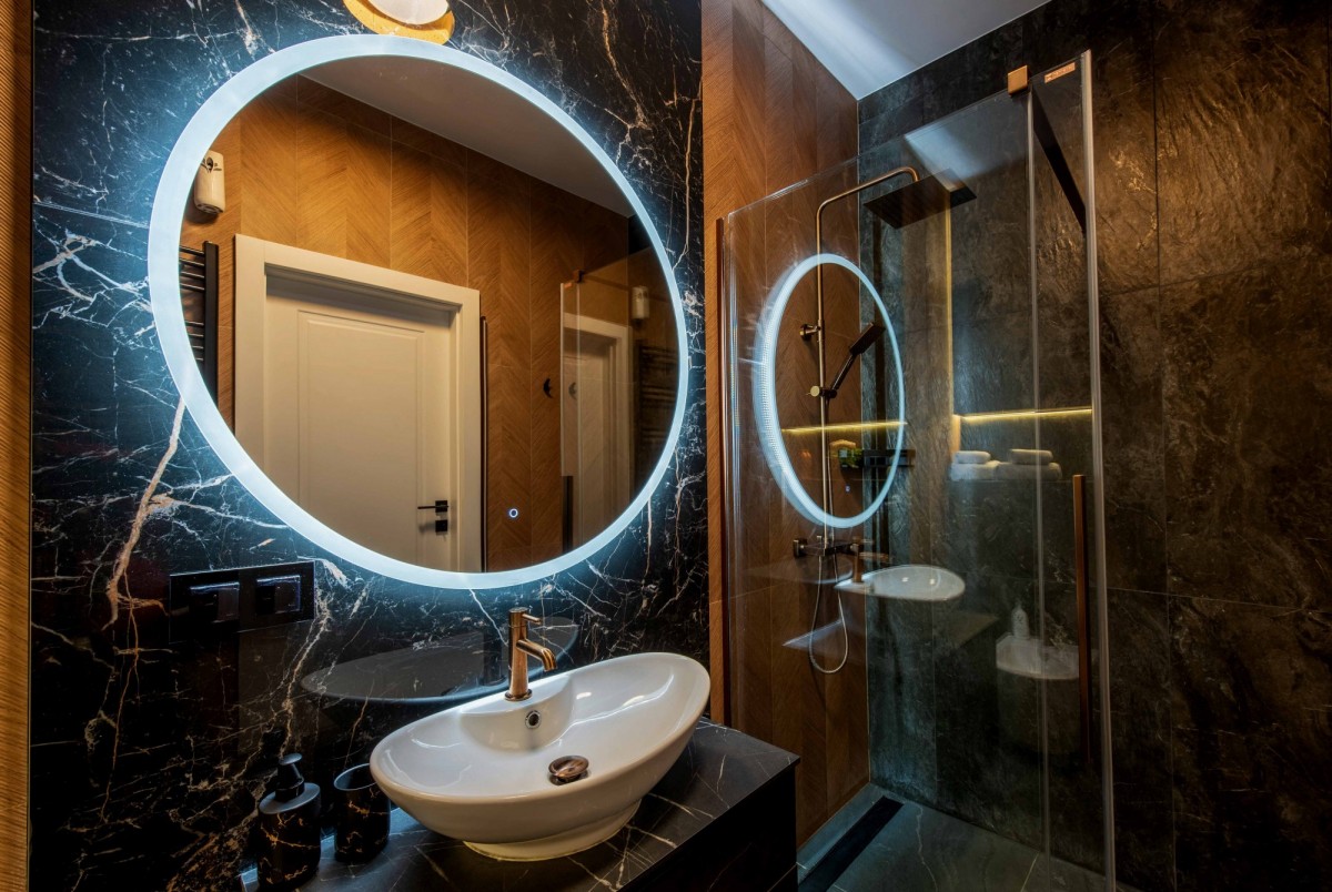 Marki sprzętu: lodówka, płyta indukcyjna - Samsung, zmywarka - Bosch, piekarnik - Hisense, klimatyzator - Cooper Hunter