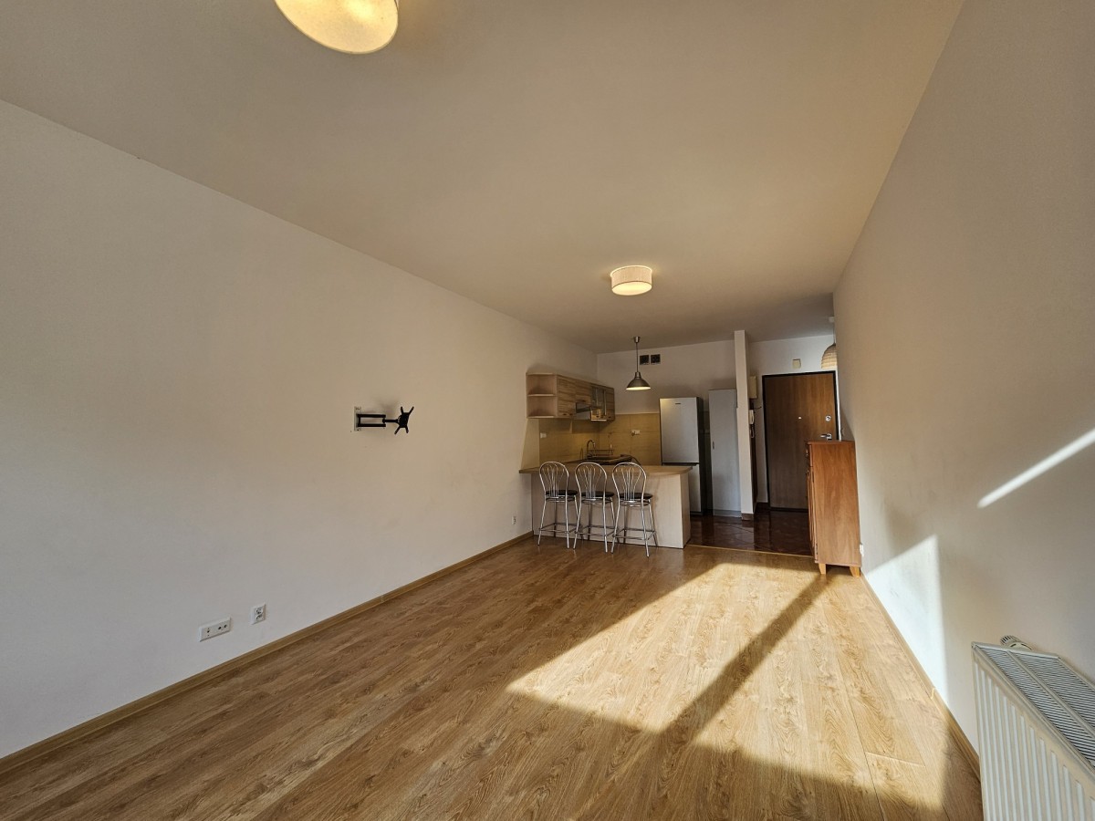 Dwupokojowe mieszkanie z aneksem kuchennym i balkonem od strony południowej we wnętrzu osiedla zapewnia spokój i naturalne światło przez większą część dnia.