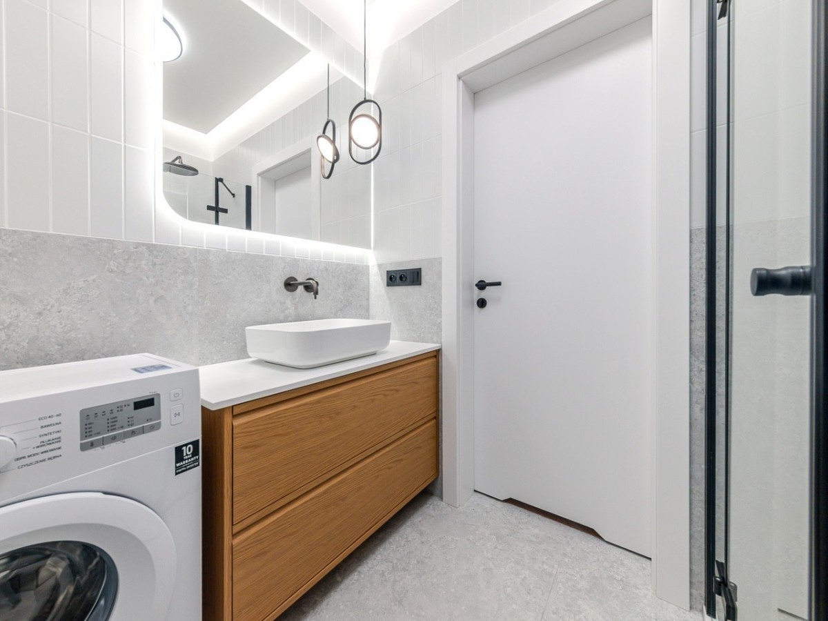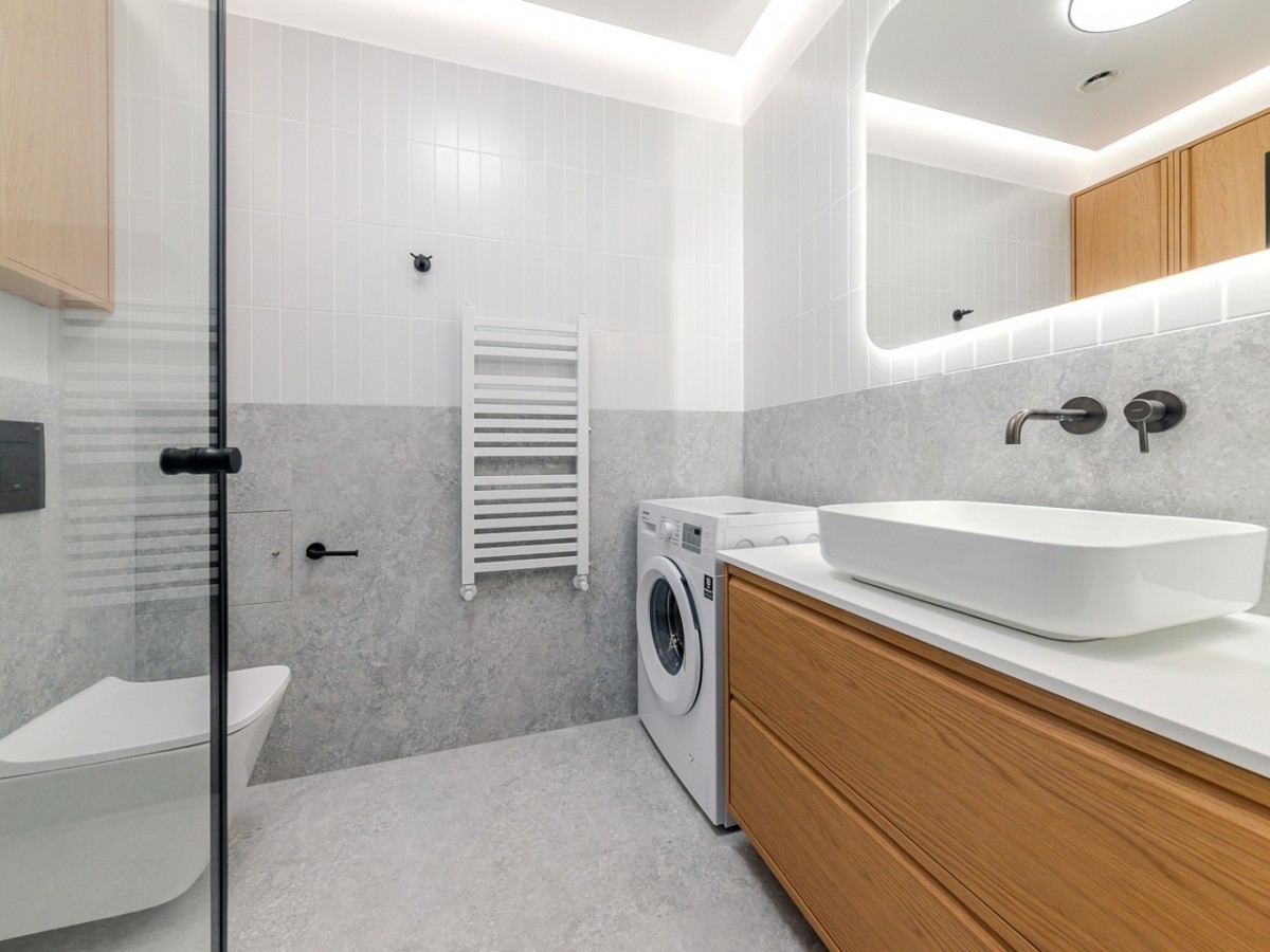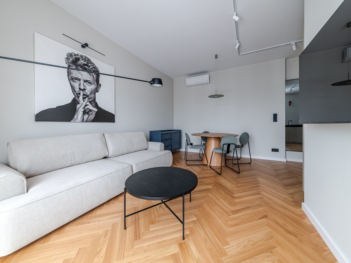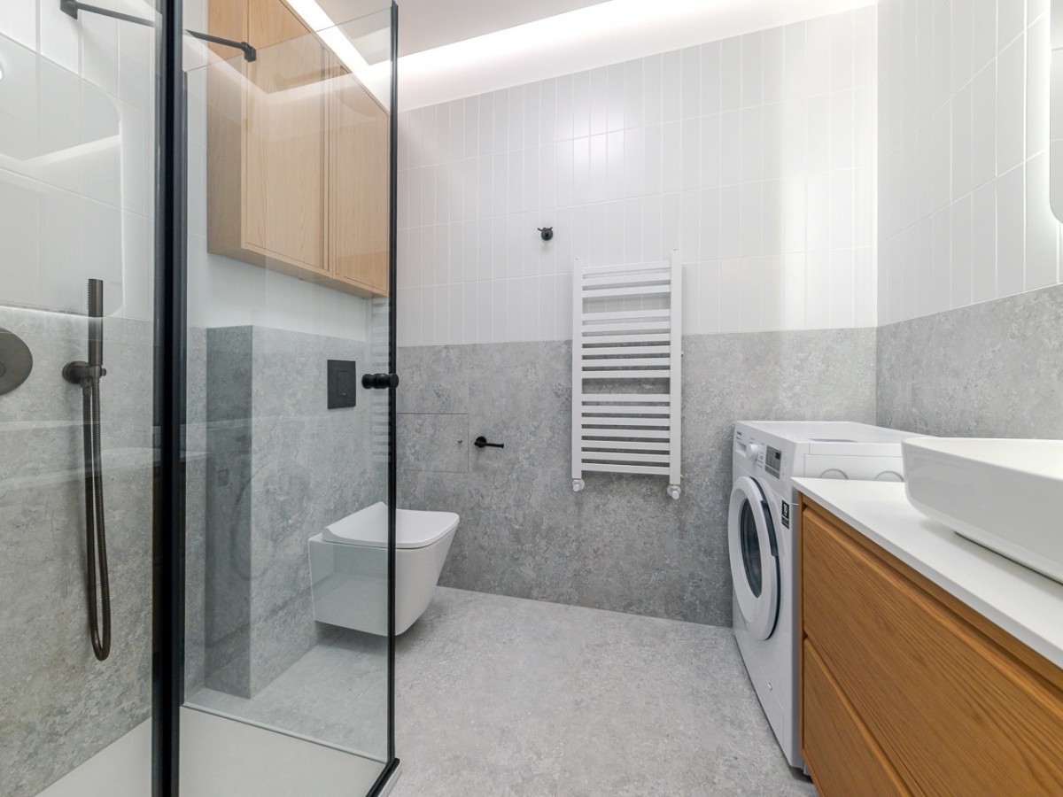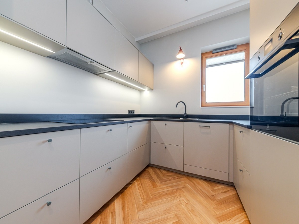 The flat is fully furnished and equipped - the kitchen includes a 60 cm dishwasher, the living room has a sofa bed and a 55" TV, and the bedroom has a 160 cm bed and three wardrobes. The property has never been lived in. It is ideal for a single person or a couple who value comfort and peace and quiet.