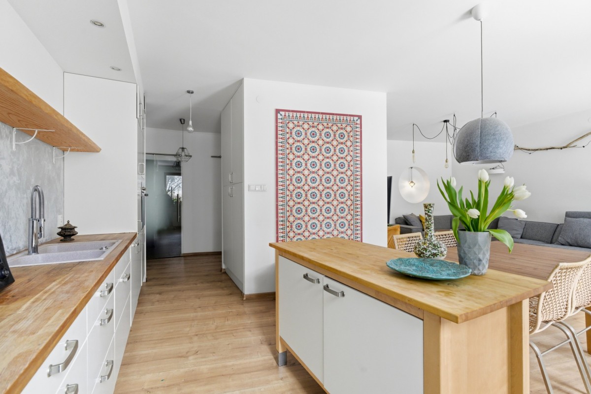 Lokal znajduje się na parterze i posiada dwa prywatne ogródki obrośnięte roślinnością, które stanowią naturalne przedłużenie strefy dziennej i zapewniają dodatkową przestrzeń do wypoczynku.