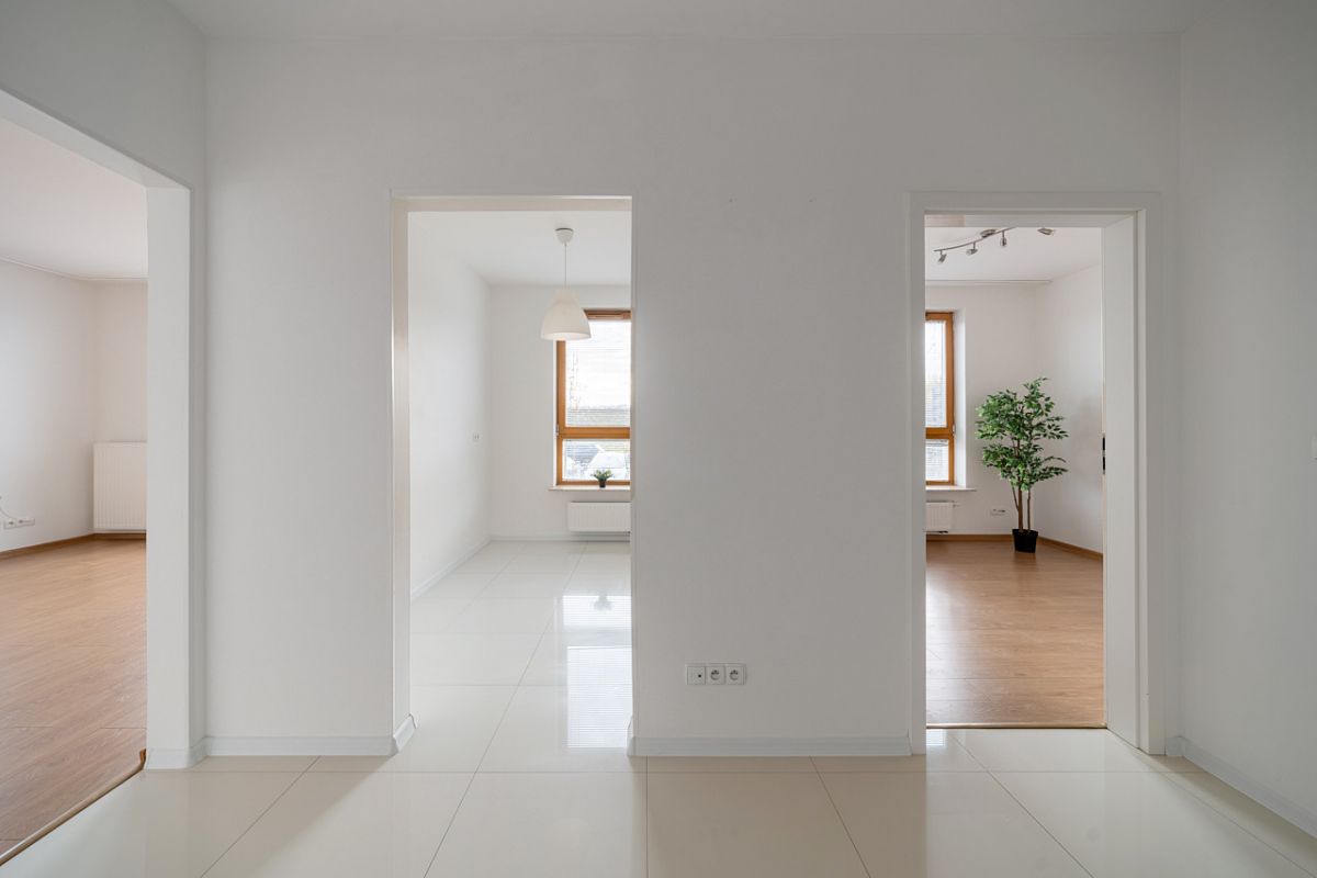 - komfort przestrzeni - brak jakichkolwiek budynków na przeciwko okien powoduje, że będąc w mieszkaniu ma się poczucie ekskluzywności i prywatności