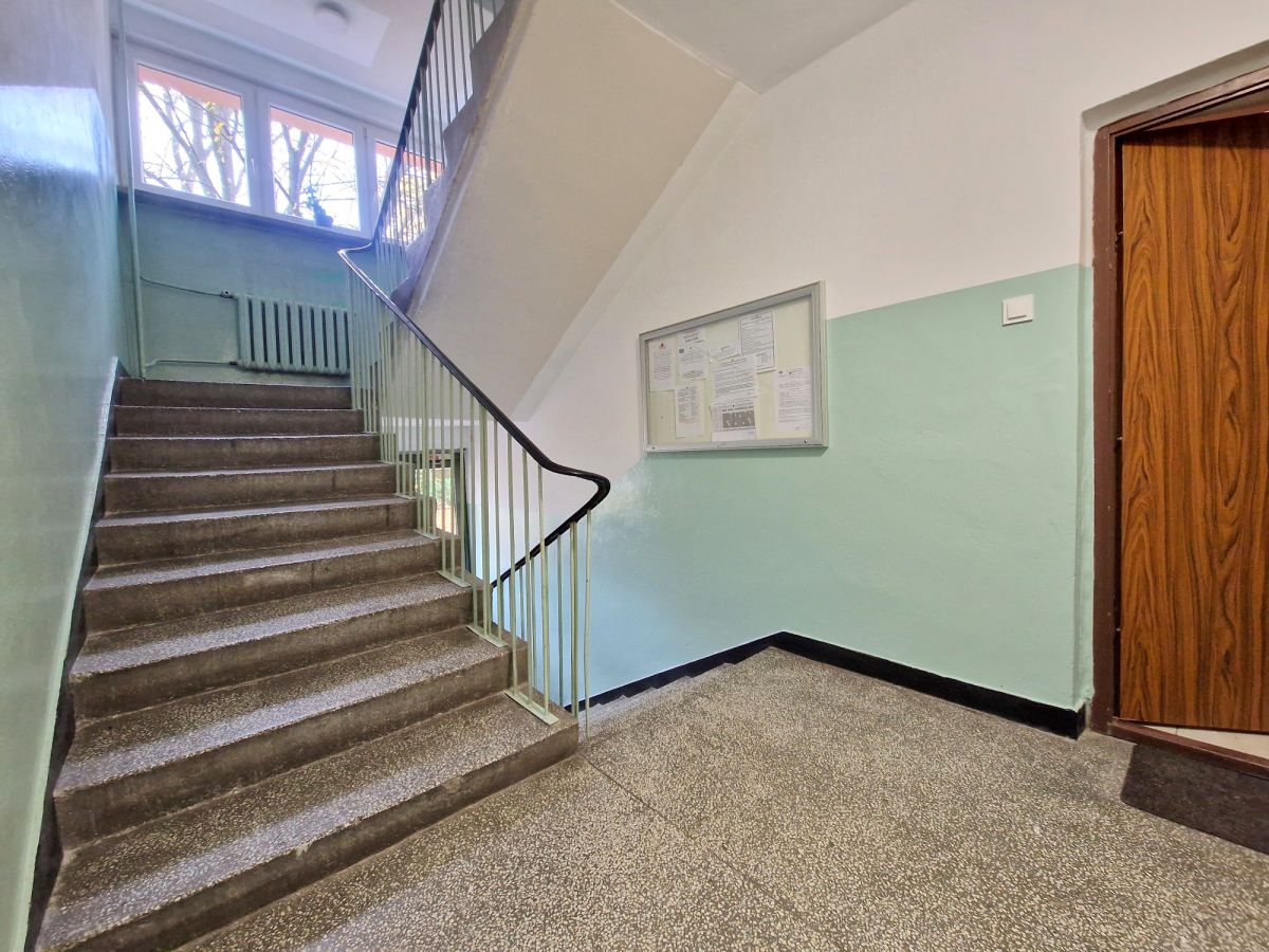Budynek 4-kondygnacyjny z lat 60-tych, bez windy. Budynek w dobrym stanie technicznym, po wymianie piony wodno-kanalizacyjne, klatki schodowe schludne i czyste.