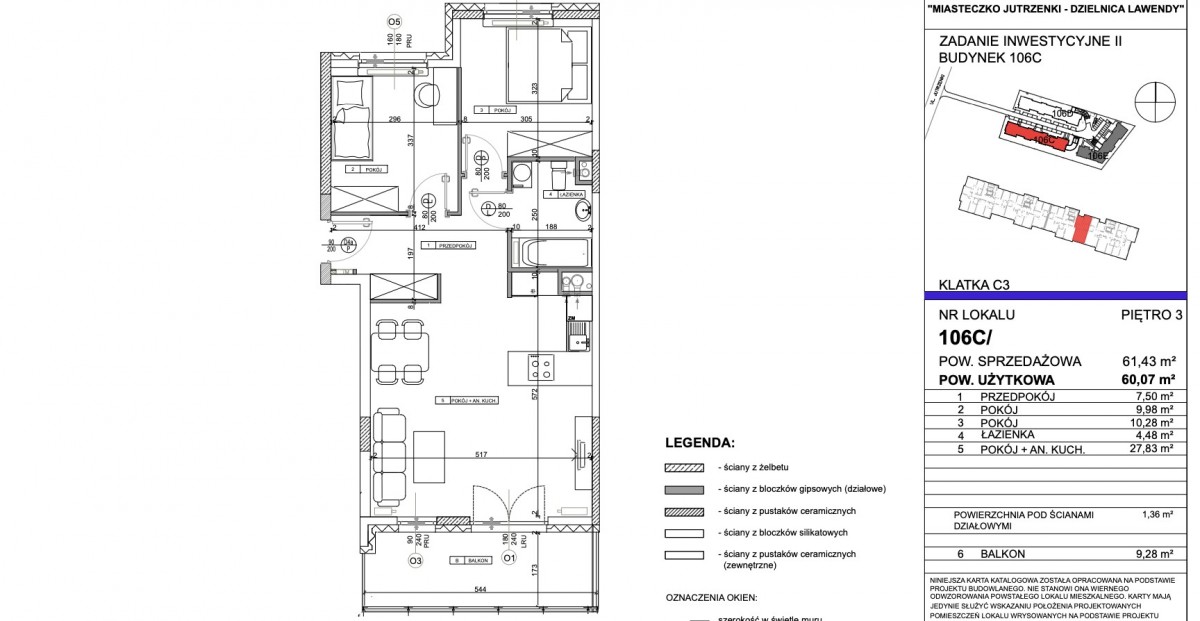 Na sprzedaż nowe, świeżo wykończone i gotowe do wprowadzenia, trzypokojowe mieszkanie o powierzchni 60,07 m².