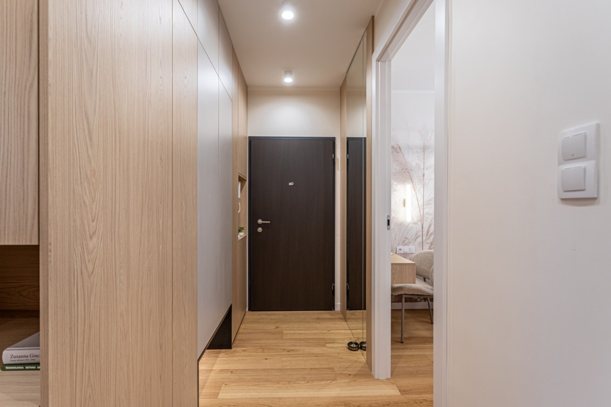 Mieszkanie zostało zaprojektowane tak, aby wykorzystać każdy centymetr powierzchni. Wykończone w wysokim standardzie, z dbałością o detale.