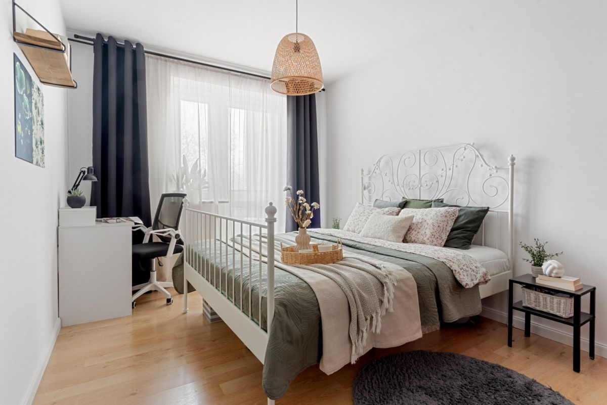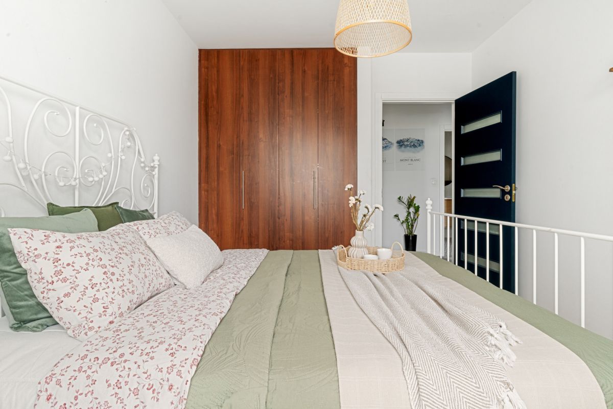 Nieruchomość posiada bardzo komfortowy układ funkcjonalny - sypialnie oddalone są od części dziennej, dzięki czemu dźwięki dobiegające z salonu i aneksu kuchennego są niemal niesłyszalne w sypialniach.