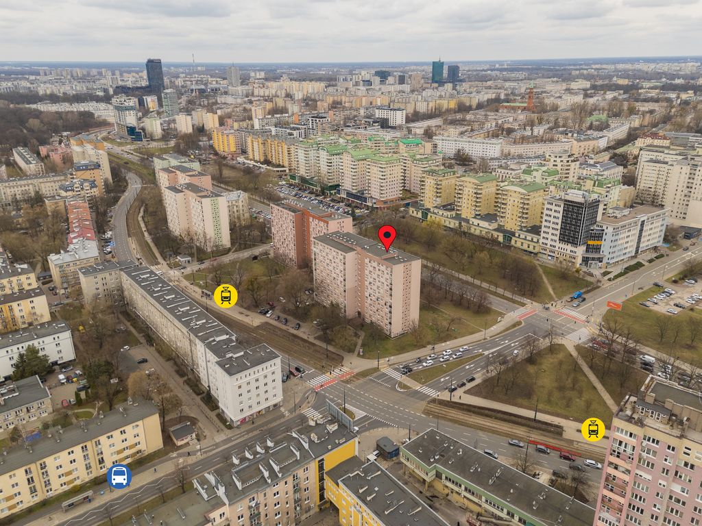 Największym atutem lokalizacji jest doskonała komunikacja. Przystanek tramwajowy i autobusowy znajduje się tuż przy budynku, a w kilkanaście minut można dotrzeć do stacji metra.