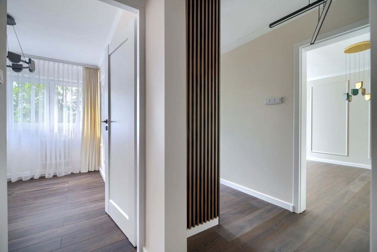 Mieszkanie zostało wykończone z dbałością o każdy detal, przy użyciu materiałów wysokiej jakości. Składa się z: