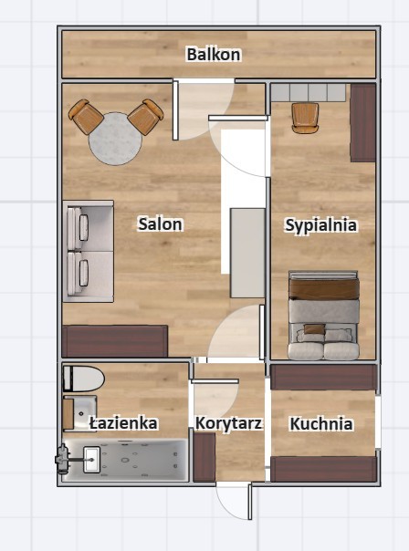 Mieszkanie ma bardzo wygodny, funkcjonalny układ: