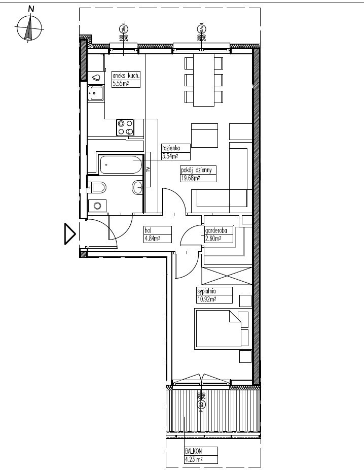 - Balkon od strony południowej - sypialnia z naturalnym światłem przez większą część dnia